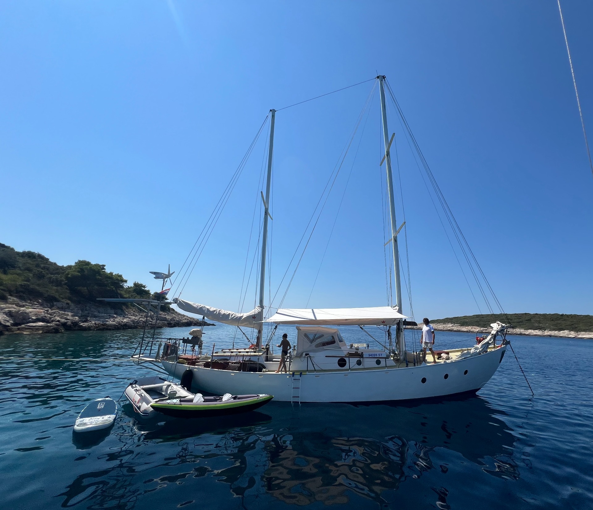 Price includes: skipper, fuel, kayak, SUP, snorkeling gear, towels, linen, cooking spices, olive oil, hand soap, toilet paper.